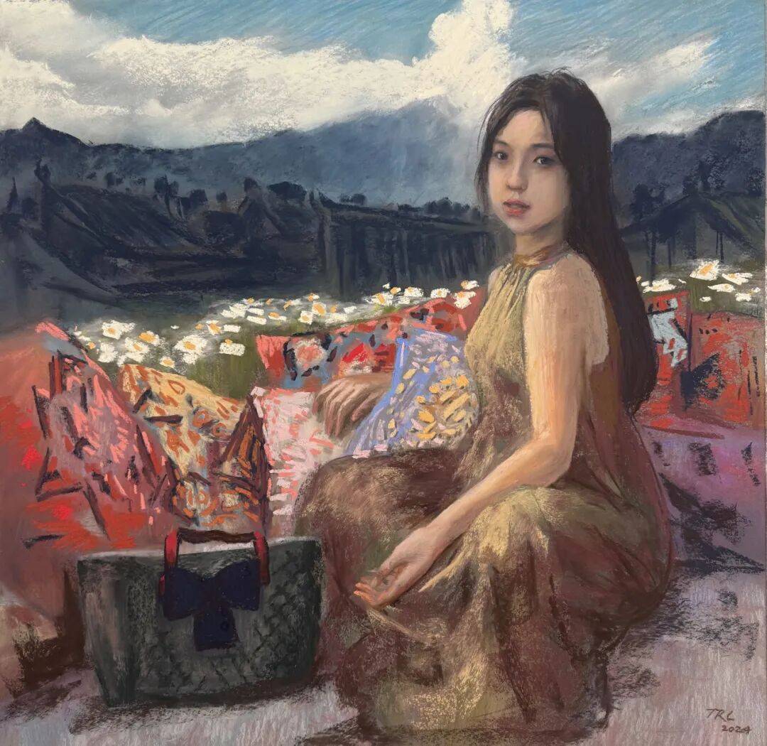 “对景借境”, 精准概括了艺术家佟荣亮的创作理念与艺术追求。展览通过其具有代表性的两个系列——以身边人物为模特的色粉作品,与以苏州园林为主题的油画风景,完整呈现了她如何从“面对景象”的凝视,走向“借得心境”的诗意创造。